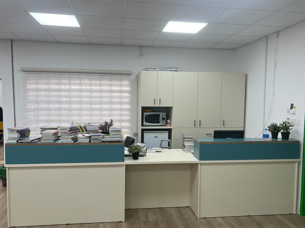 דלפק בשילוב ארון תואם, עם תוספת עליונה, המאפשר התאמה אישית של הגדלים על פי הצורך. מתאים למגוון סביבות עבודה.