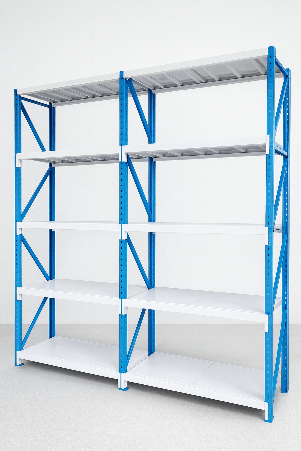 מדף מידוף מברזל בעיצוב תעשייתי נקי וחזק, מיועד למחסנים, חנויות, מרכזים לוגיסטיים וחללי אחסון מקצועיים. המבנה עשוי שלדת ברזל מסיבית עם מדפים מתכתיים עמידים, המספקים יציבות גבוהה ונשיאת משקל מרשימה לאורך זמן.