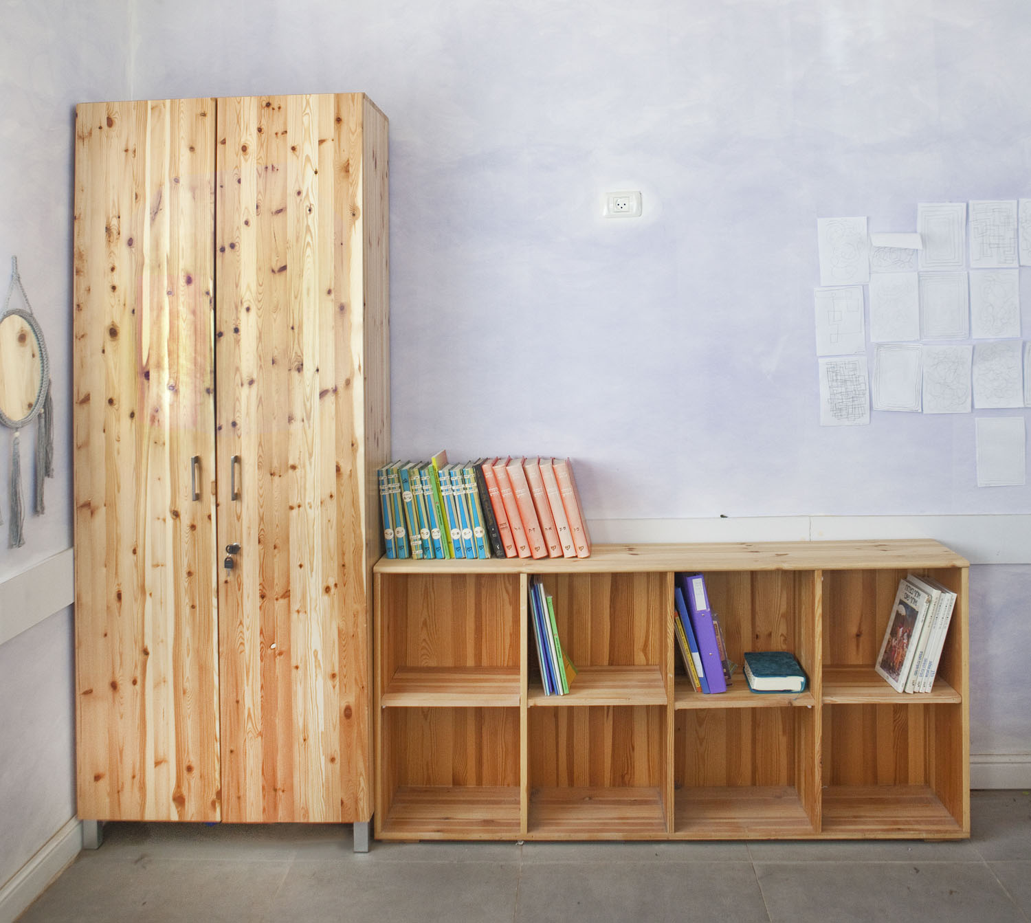 כוורת עם 8 תאים, עשויה מעץ אורן מוקצע עם לכה שקופה, מספקת פתרון אחסון אנתרופוסופי איכותי. הכוורת אידיאלית לשימוש בגני ילדים, בתי ספר וסביבות לימודיות, עם אפשרות לייצור במידות מותאמות אישית לפי דרישת הלקוח.