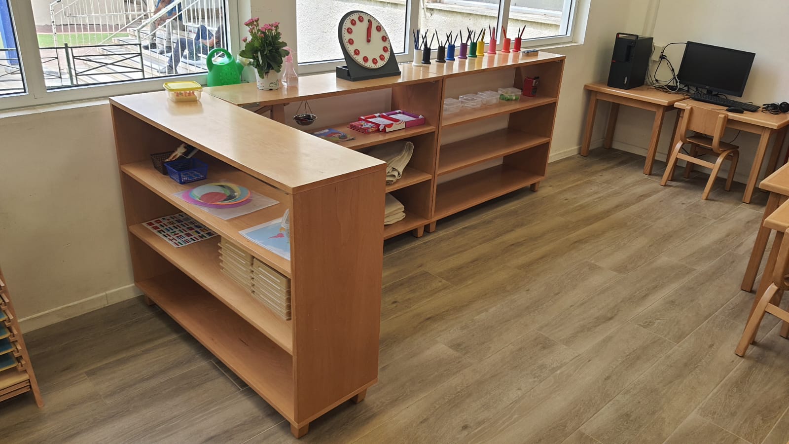 - רהיטים בגובה מותאם אישית לילדים, כולל שולחנות, כיסאות, כונניות ספרים וארונות.